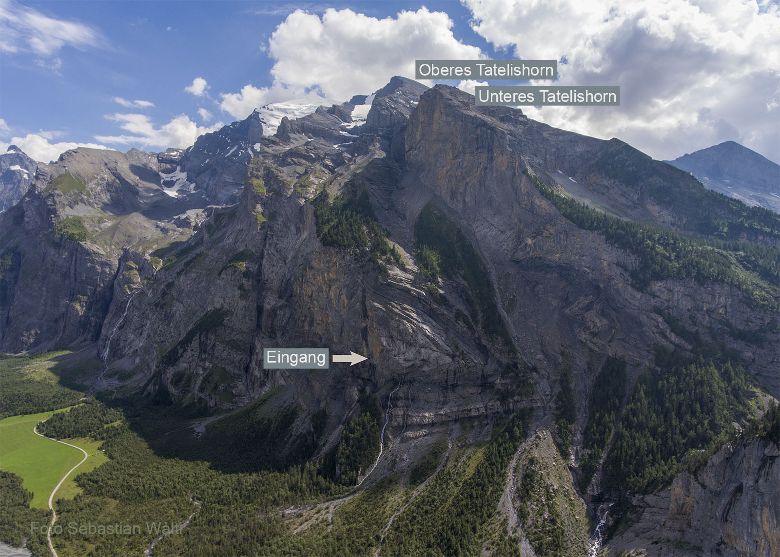 Blick von Norden auf den Südhang des Gasterntals mit den beiden Tatelishörnern